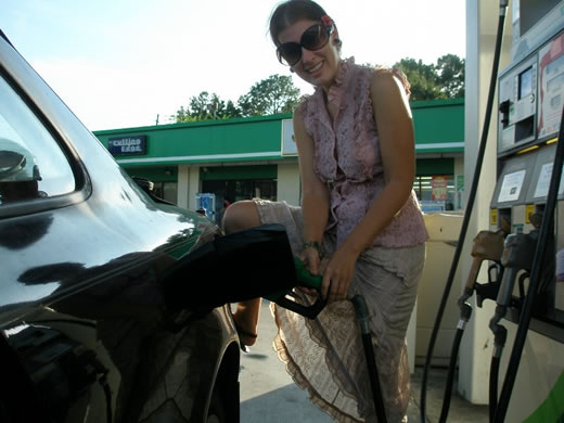 Esta chica es una auténtica perra viciosa. ¿Recordáis aquella canción paradigma del reggaeton cuyo estribillo resonaba “dame más gasolina, dame más gasolina”? Pues se podría aplicar perfectamente a la chica de nuestras fotos. Esa jovencita tan guarra va con el coño al aire por la vida. ¡Es que no lleva bragas! Y lo que es más grave todavía: ¡los surtidores la ponen toda perra! No hay más que ver cómo se hace la foto insinuando que podría meterse la manguera por su chocho rasurado… Aunque aquí no termina la cosa, no. La tía se hace fotos enseñando tetas y coño en cualquier parte. Cuánta falta le hace un buen polvo…